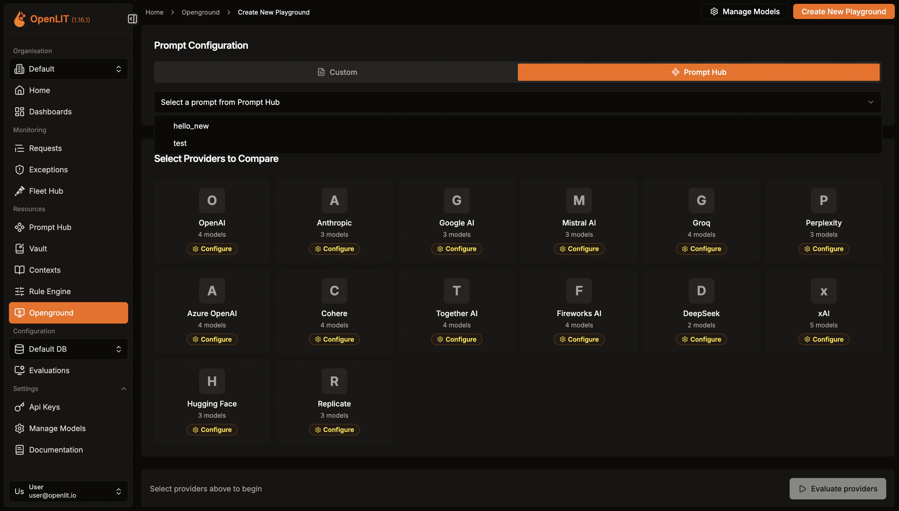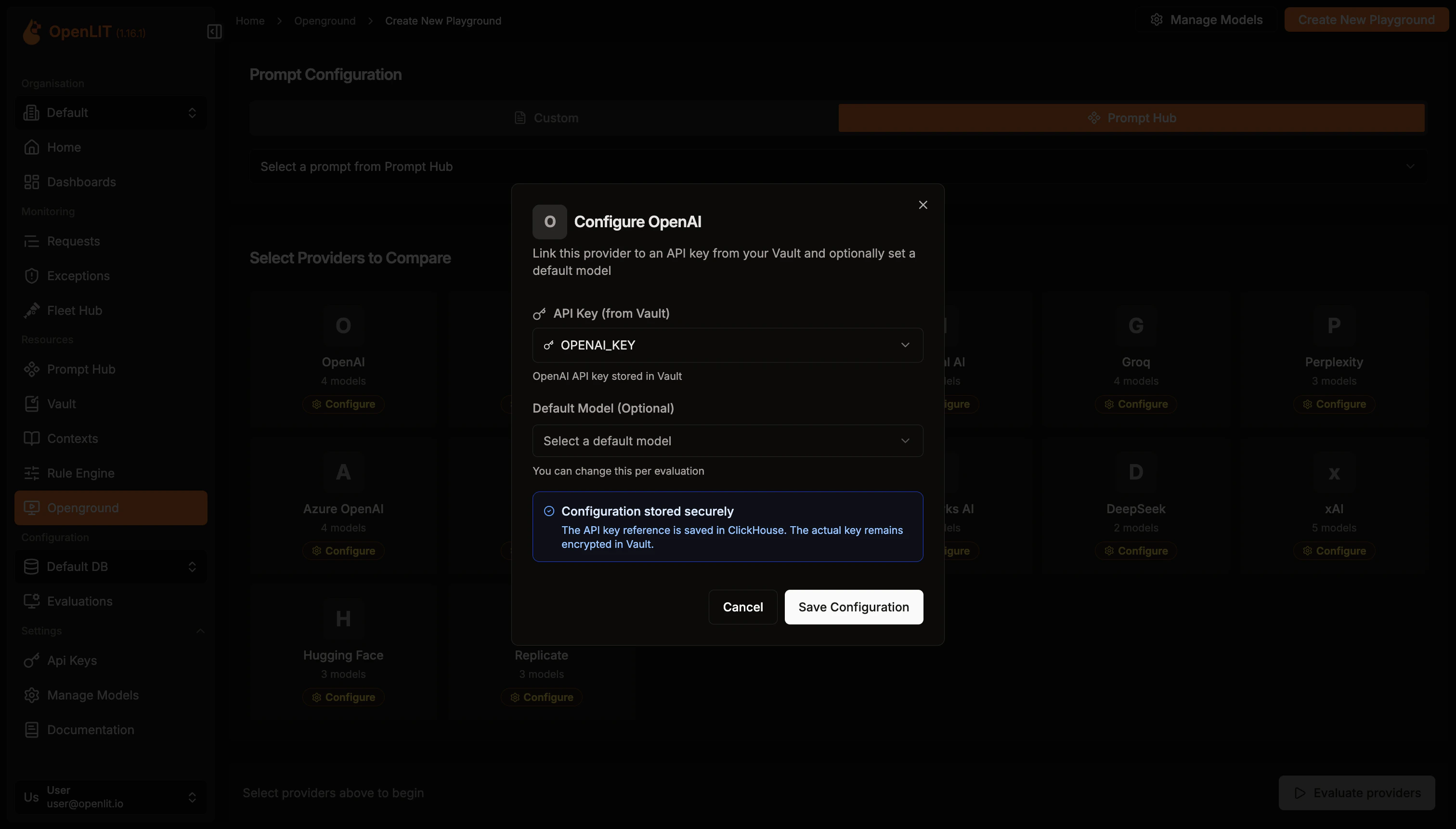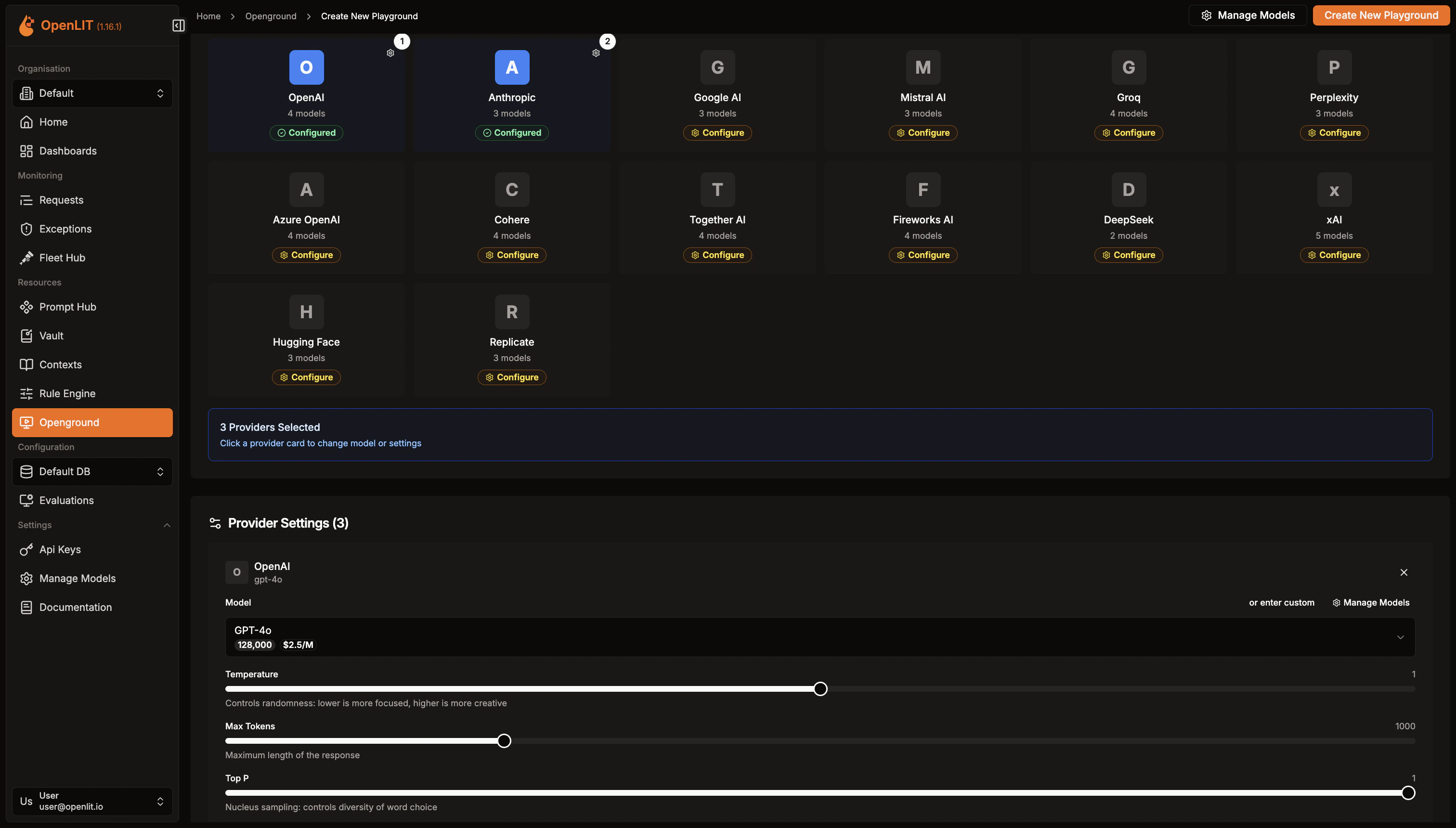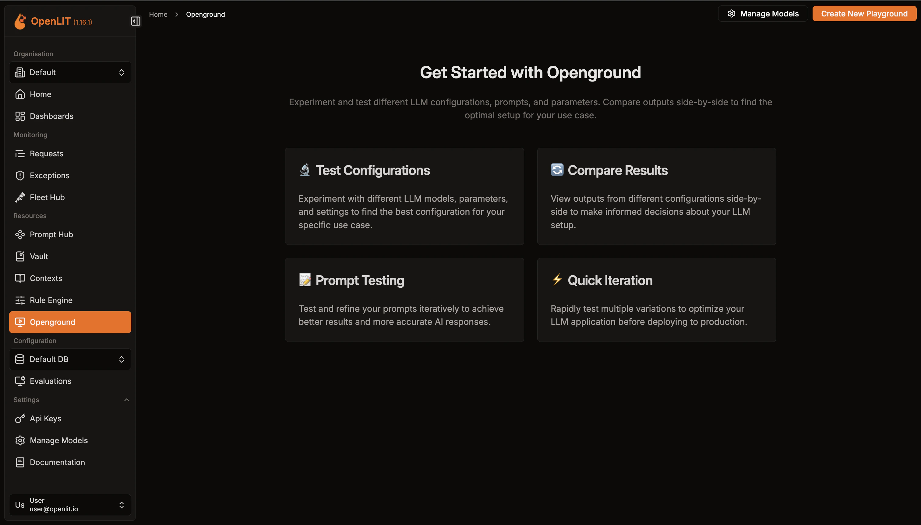 - Navigate to the OpenGround in OpenLIT.