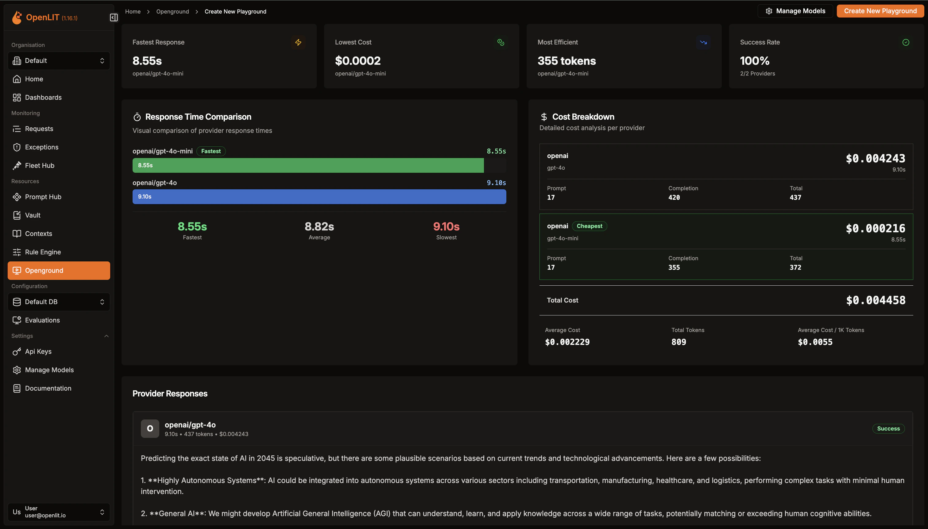 - Cost Analysis: Evaluate the cost implications of using different LLMs, helping you balance budget constraints with performance needs.