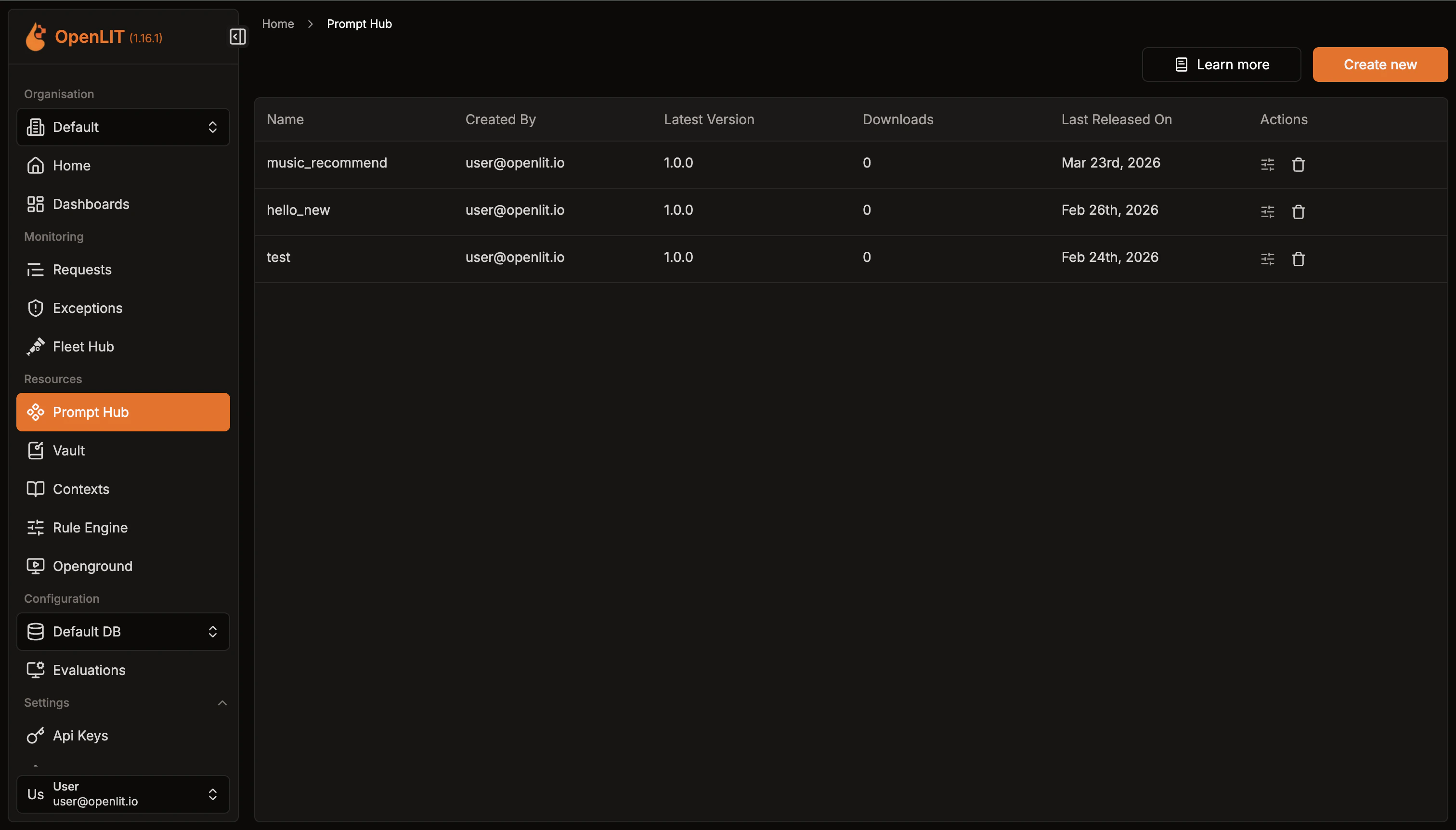- Navigate to the Prompt Hub in OpenLIT.